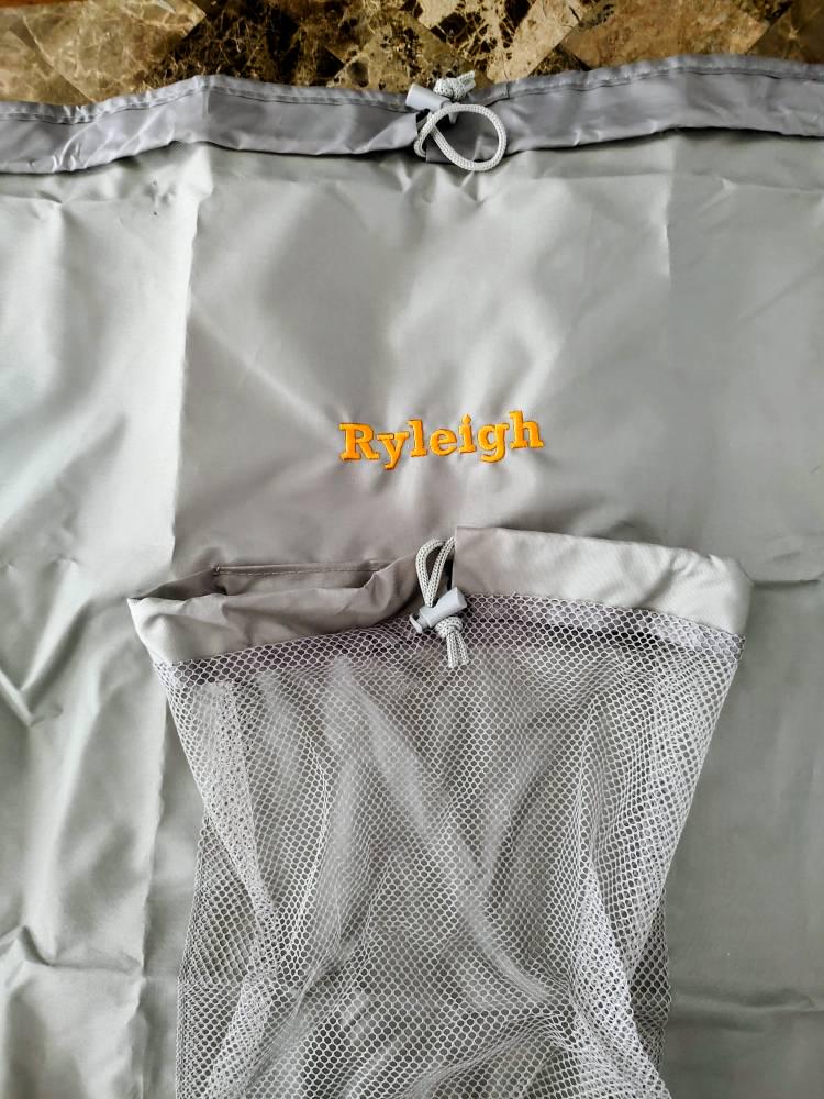 Perfect laundry bag for my college freshman. Feels very sturdy. Monogram is a lovely touch.